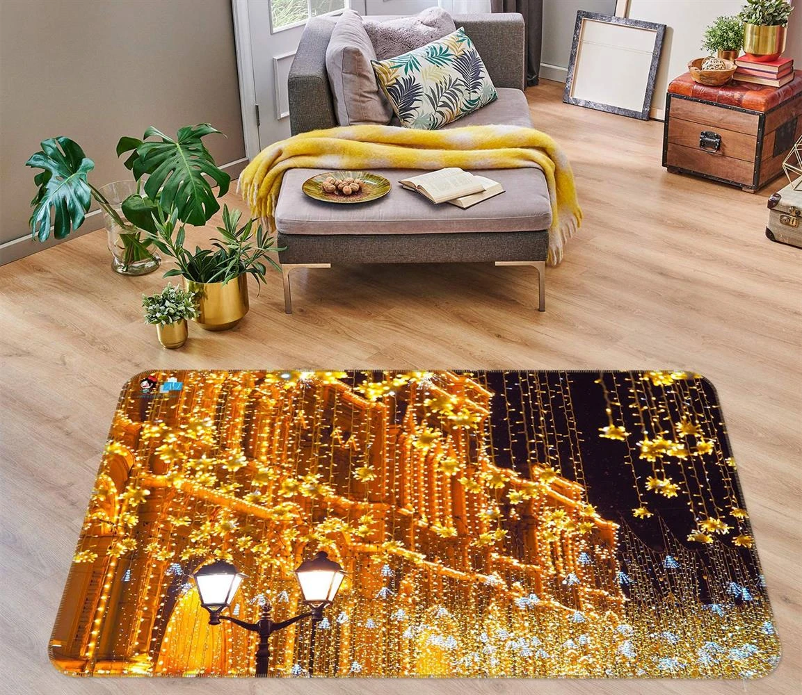 3D String Lights Building 54255 Christmas Non Slip Rug Mat Room Mat Quality Elegant Photo Carpet Xma