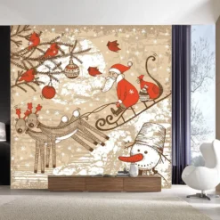 3D Father Christmas Skating 42 Wallpaper Mural Wall Mural Wall Murals Removable Wallpaper Woven Pape
